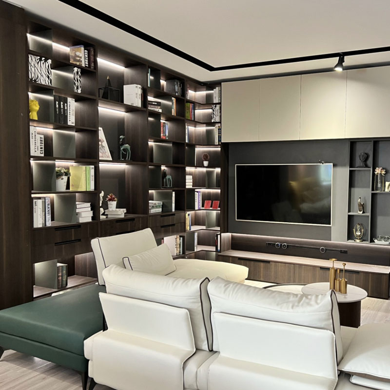 Sinoah tự hào chuyên nghiệp trong việc cung cấp Tủ Phòng Khách theo yêu cầu cho các nhà xây dựng, nhà thầu, nhà phát triển và chủ sở hữu. Sinoah sản xuất tủ phòng khách bằng cách sử dụng các vật liệu khác nhau như malemine, pvc, pet, sơn mài và thủy tinh, v.v. theo yêu cầu và ngân sách của khách hàng. Chúng tôi lựa chọn những nguyên liệu đủ tiêu chuẩn để hoàn thiện những chiếc tủ tinh tế, mang đến một ngôi nhà tiện nghi cho người sử dụng. Tủ phong cách hiện đại cho phòng khách này chủ yếu sử dụng chất liệu gỗ malemine và kính.