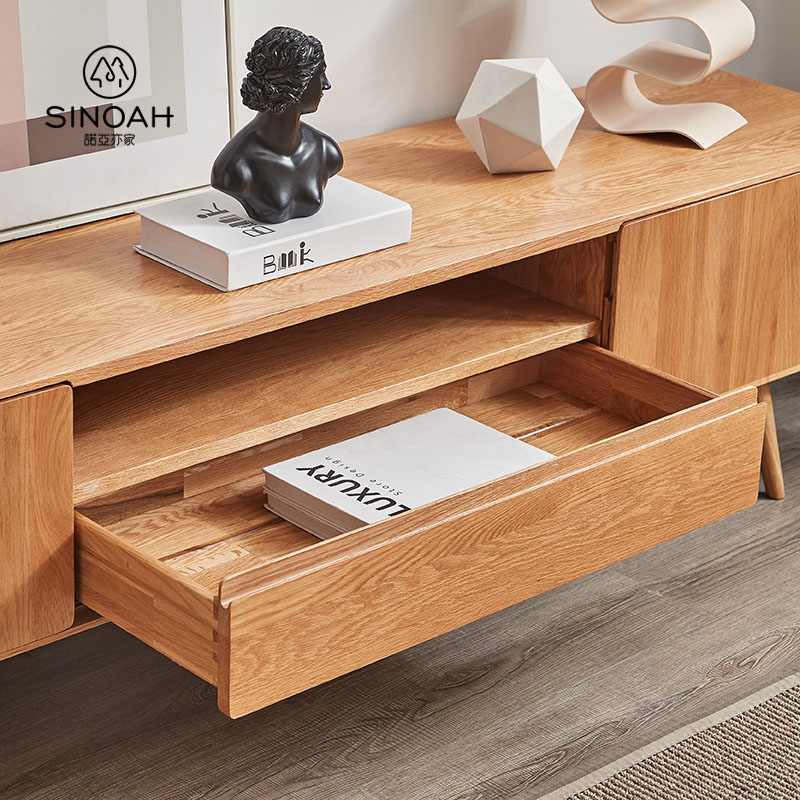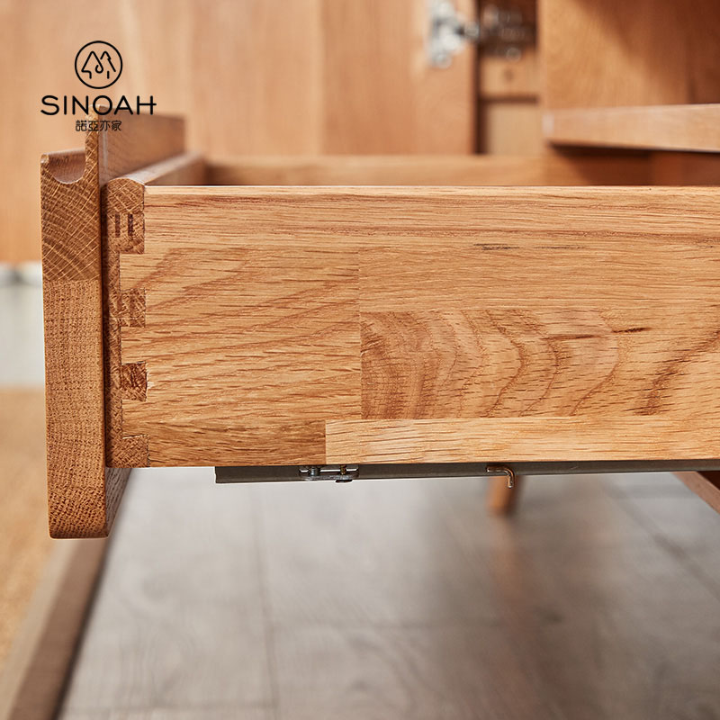 Sơn mở thân thiện với môi trường giữ cho kết cấu thực của gỗ sồi trắng tốt. Bạn có thể trải nghiệm sự trong lành và rộng mở của thiên nhiên ngay tại nhà. Đồng thời, gỗ sồi trắng có khả năng chịu lực, chịu lực tốt. Tuy thiết kế đường nét đơn giản nhưng các chức năng rất thiết thực và kích thước dài. Không gian chứa có thể chứa thực phẩm với các quy cách khác nhau và đáp ứng mọi nhu cầu của cuộc sống. Kho lưu trữ mở không chỉ có thể chứa đồ mà còn có thể trang trí cho cuộc sống. Với nhiều ngăn kéo, có thể chứa đồ lặt vặt trong đó, giúp nhà cửa sạch sẽ hơn