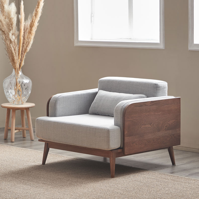Sofa gỗ Sồi 3 chỗ màu ghi sẫm