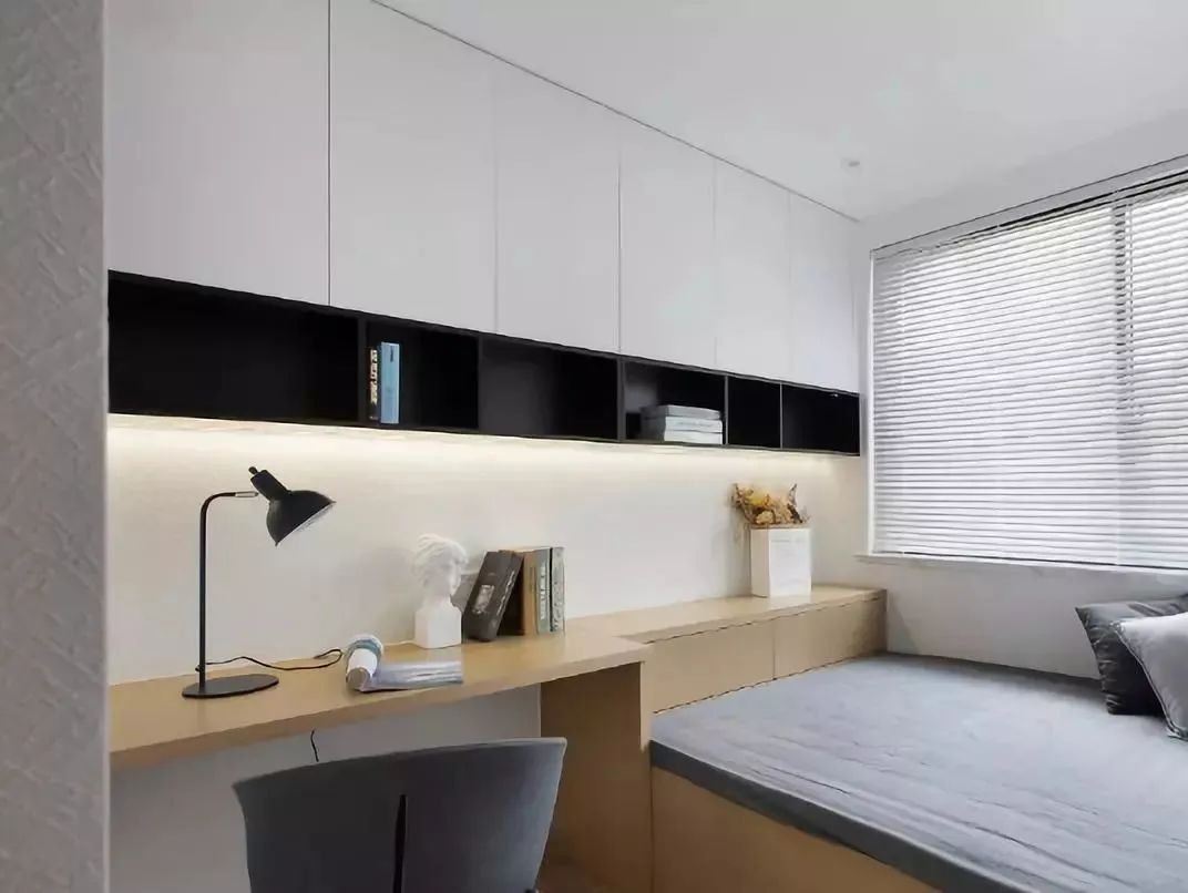 Bàn cạnh giường và tủ:Đối với các tình huống mà một bàn được đặt bên cạnh giường, chỉ cần áp dụng một thiết kế tích hợp của bàn và tủ.