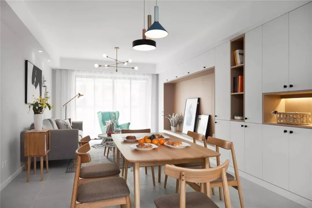Ăn uống và tủ sách:Trong phòng ăn, bạn có thể tùy chỉnh một bảng phụ ăn và đặt một số không gian cho một tủ sách. Trong các căn hộ nhỏ, bảng phụ và tủ sách có thể được kết hợp thành một, tiết kiệm không gian.